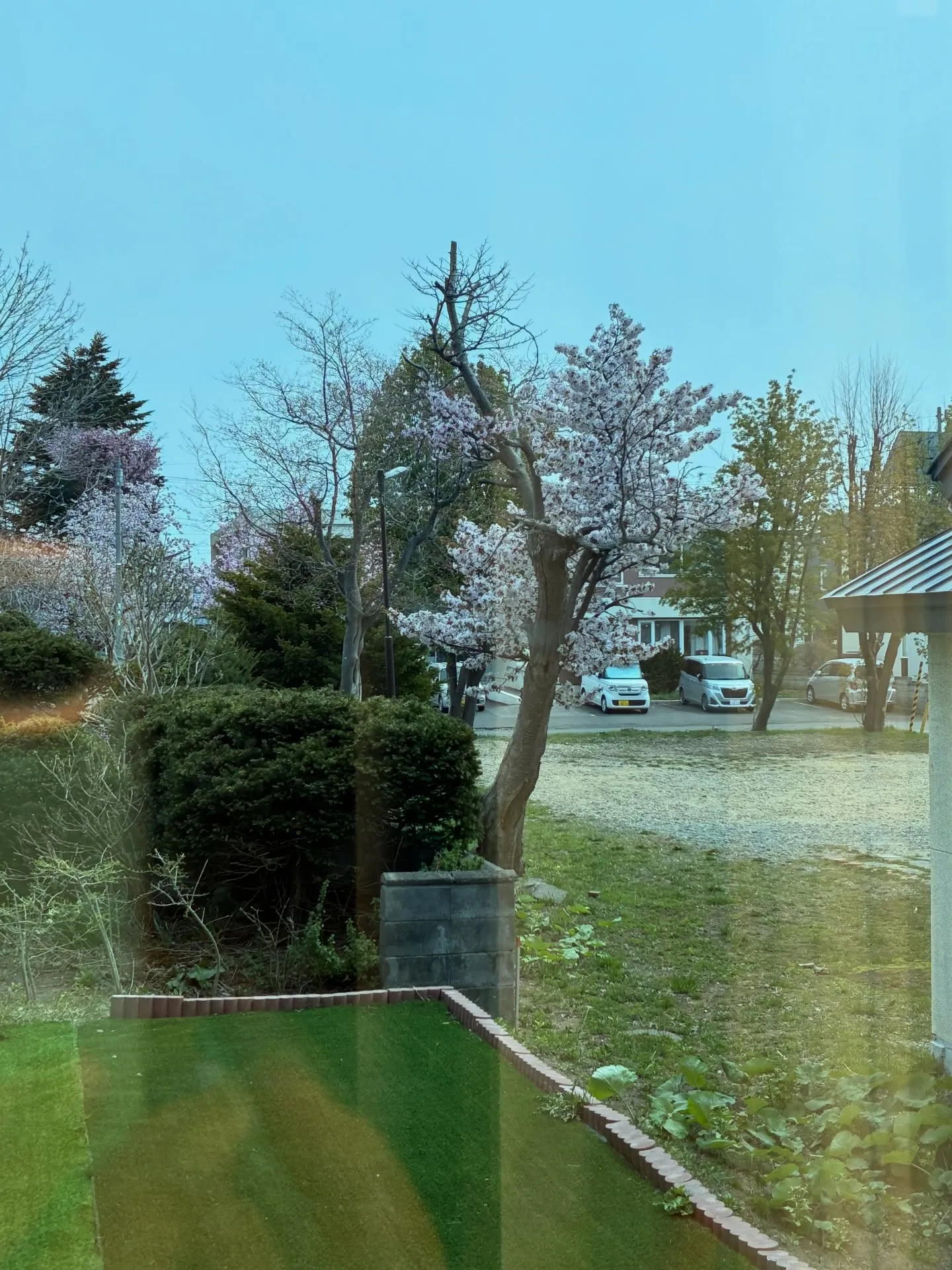 部屋から見えるが満開で 1人でお花見しています🌸
